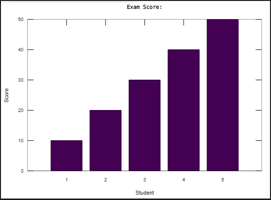 讓我們有一個有10名學生的奇特的學習大廳。我們知道這些學生獲得的分數百分比分別為10分、20分、30分、40分和50分。我們將繪制此信息的條形圖。