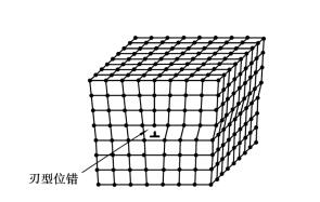 線缺陷主要是指位錯。位錯的形式很多,其中最常見的一種形式是刃型位錯,如圖1.2.4所示。刃型位錯的表現形式是在晶體的某一晶面上,多出一排原子面,它好像一把刀刃插入晶體中,使該晶面上、下兩部分晶體間產生錯排現象,故稱為刃型位錯。在位錯線附近一定范圍內,晶格發生了畸變。